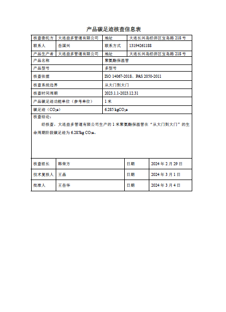 华人策略celue地址聚氨酯保温管碳足迹核查报告